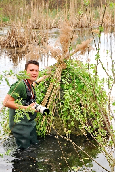 Každá vodná plocha či už je potok, rybník, močiar, alebo len zaplavené polia počas obdobia dažďov, nám ponúka možnosť pozorovať a fotografovať veľké množstva rôznych druhou vodného vtáctva. Každý druh ma špecifické nároky na prostredie a viac alebo menej sa odlišuje aj v spôsobe života. Niektoré môžeme nájsť na otvorenej vodnej ploche (kačice, potápky,),iné na brehoch riek a vodných nádrží (bahniaky, volavky), niektoré žijú utajeným spôsobom v trstí a pálkach (trsteniariky, chriaštele, bučiaky). Každý druh si vyžaduje iný prístup pri fotografovaní či už to vnímame z hľadiska fotografickej výbavy, typu maskovania ktorý využijeme, ročného obdobia atď. No nemôžeme zabúdať na jednu dôležitú vec a to že žiadna fotografia nestojí zato, aby sme daný druh nejakým spôsobom ohrozili. Ak pri fotografovaní zbadáme že sa daný jedinec nespráva prirodzene, treba sa zbaliť a skúsiť nabudúce (napr. ak mu necháme viac životného priestoru, veľakrát sa nám odvďačí tým, že on sám k nám príde). A teraz niečo k veci o samotnom fotografovaní vodného vtáctva. Ako nato...?? Existuje veľa spôsobov, no garanciu peknej fotografie nám nezaručí nik. Myslím si, že najdôležitejšie je dokonalo poznať daný druh, ktorý sa chystáme fotografovať. Čím lepšie ho poznáme, tým je väčšia šanca že sa nám podarí pekný záber. Dôkladné spoznanie druhu je dôležité ešte pred samotným fotením. Nemenej dôležité je takisto dokonalé poznanie terénu (napr. hĺbka vody, svetelné pomery atď.), v ktorom sa budeme často pohybovať. Samotným prvým krokom je nájsť nejakú vodnú plochu, kde predpokladáme výskyt druhu pre nás zaujímavý. Následne nato si nájdeme vhodne miesto, odkiaľ by sme mohli pozorovať daný druh. Je potrebné získať o danom druhu čo najviac informácií, kde, ako dlho, kedy sa zdržuje na danom mieste a prečo. Všetky tieto informácie nám poslúžia pri samotnom fotografovaní. Nasleduje zvolenie vhodného krytu pre dané podmienky a druh. Sú rôzne typy krytov ktoré môžeme použiť, buď použijeme maskovacie siete a prírodný materiál, trvalý kryt z trstiny, maskovacie stany, alebo fotovor. Najväčším pomocníkom pri fotografovaní vtáctva na voľnej hladine je fotovor. Je to akýsi špeciálne upravený plavák. Ide o konštrukciu vyrobenú z odpadových novodurových trubiek, v prednej časti vybavené doskou a polystirenovým plavákom. Na plaváku je pripevnená statívová hlava s fotoaparátom. Na fotovor je nasadená konštrukcia z ľahkých plastových trubiek a zakryje sa to maskovacou sieťou. Pri fotografovaní s fotovorom používam neoprénové rybárske čižmy. Vždy sa treba postaviť k nejakému tŕstiu, aby sme neboli nápadný, aby sme mali dobré svetlo a už nám zostáva len čakať na ten správny záber. Fotovor nám poskytuje obrovskú možnosť nahliadnuť do skrytých tajov života vtáctva. Okrem vtákov sa nám určite raz za čas naskytne aj možnosť nafotografovať rôzne druhy obojživelníkov, vážok, cicavcov atď. Tak asi takto postupujem pri fotografovaní vodného vtáctva. Dúfam že som vám aspoň z časti priblížil túto problematiku. Prajem Vám dobré svetlo a hlavne veľa trpezlivosti, lebo za každou dobrou fotografiou sa skrývajú hodiny čakania .